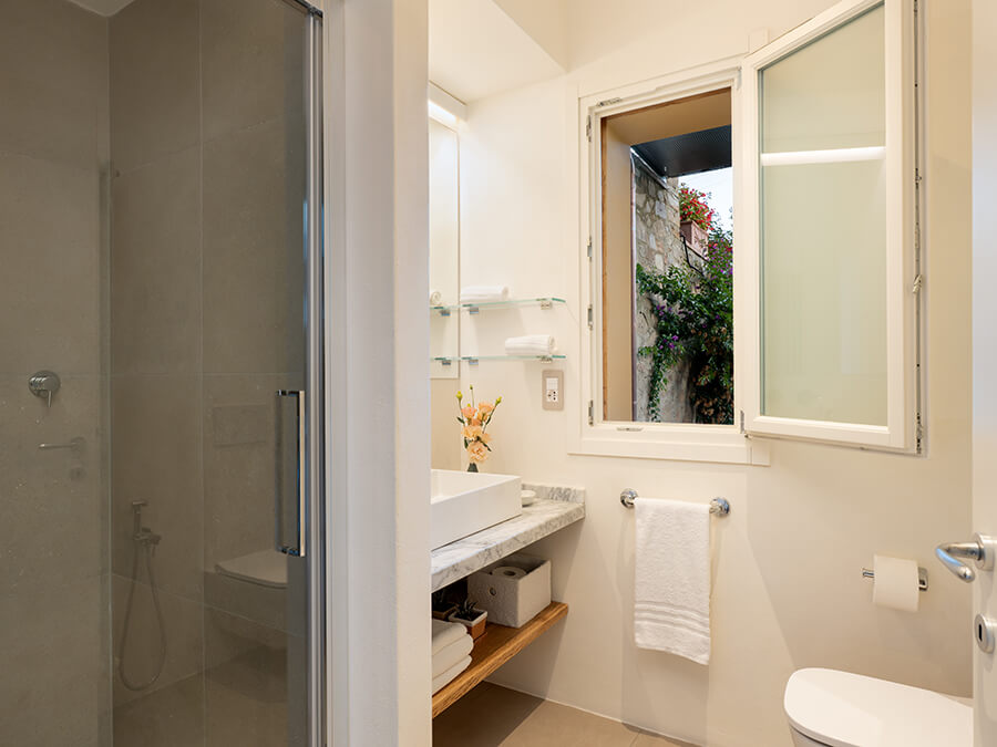 • Bedroom 1: Double bed, bathroom with shower, air conditioning, private garden access