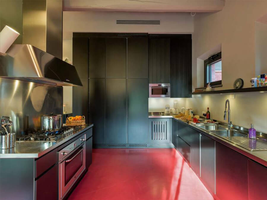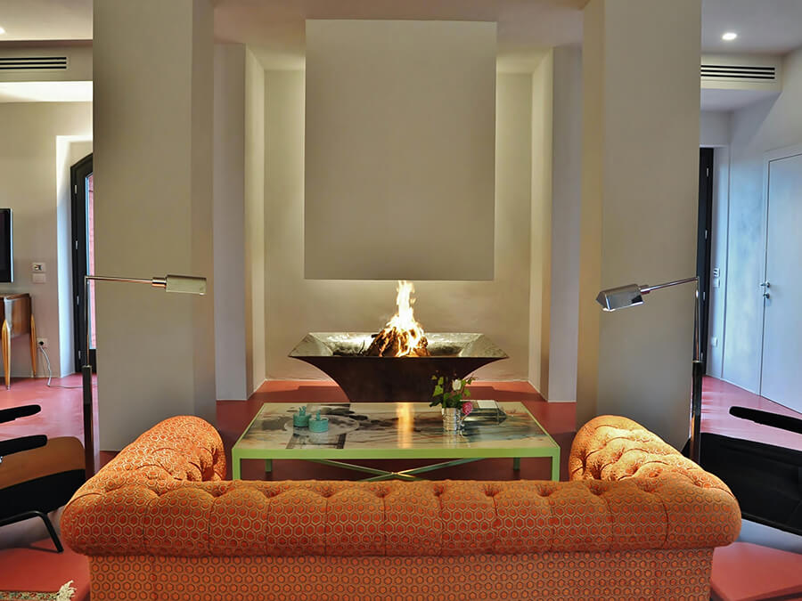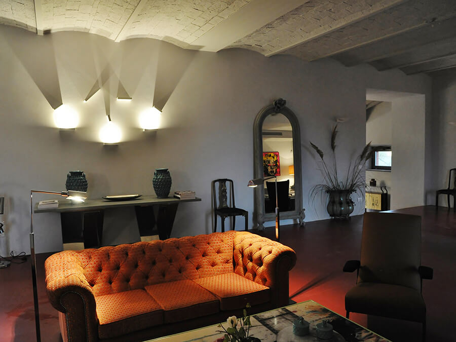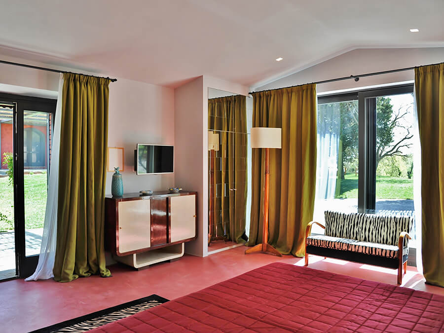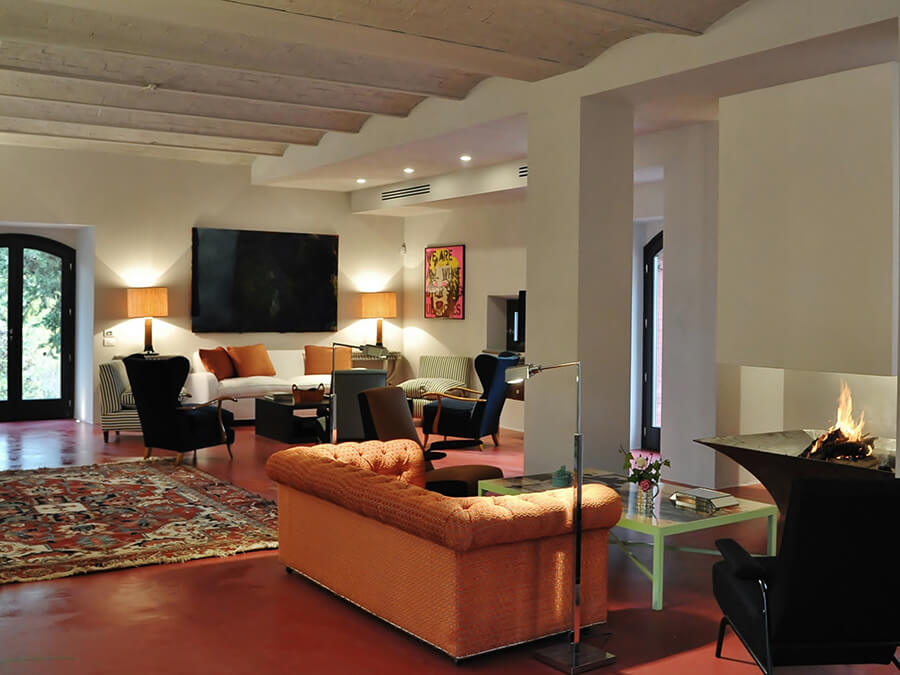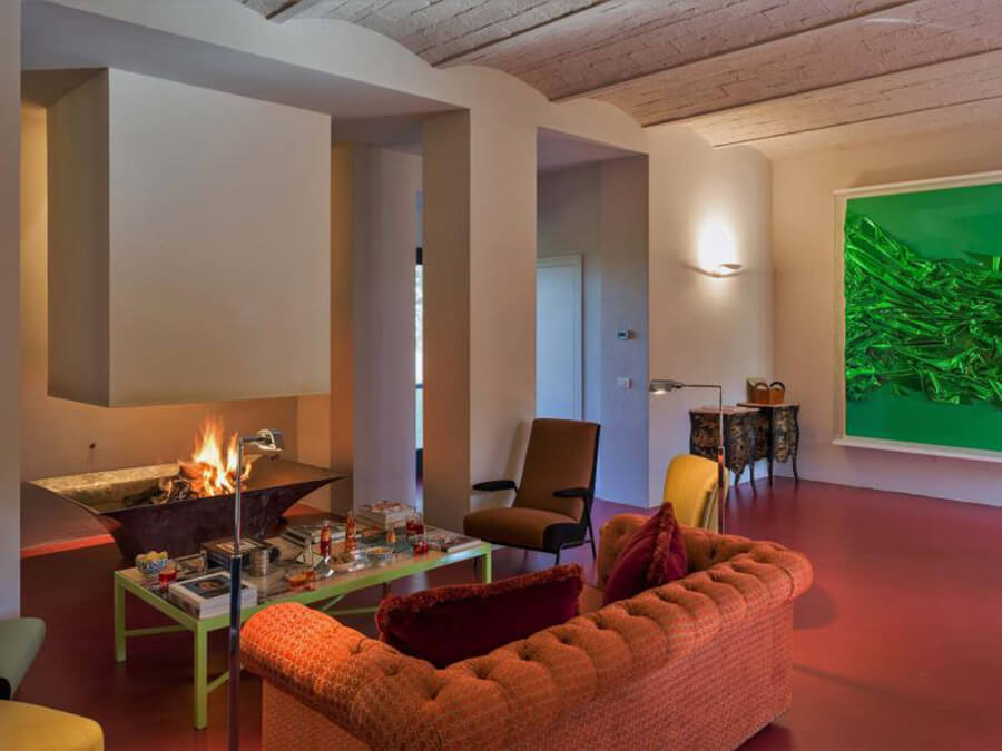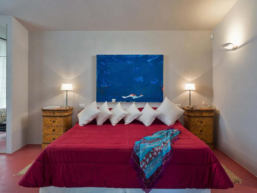 Inside, Villa San Bartolomeo has been thoughtfully curated by its art-collecting owners. With 585 square meters of living space across two floors, the home balances antique character with contemporary design. In addition, custom-made couches, sleek lighting, and museum-worthy art pieces are layered among original features and modern comforts.
