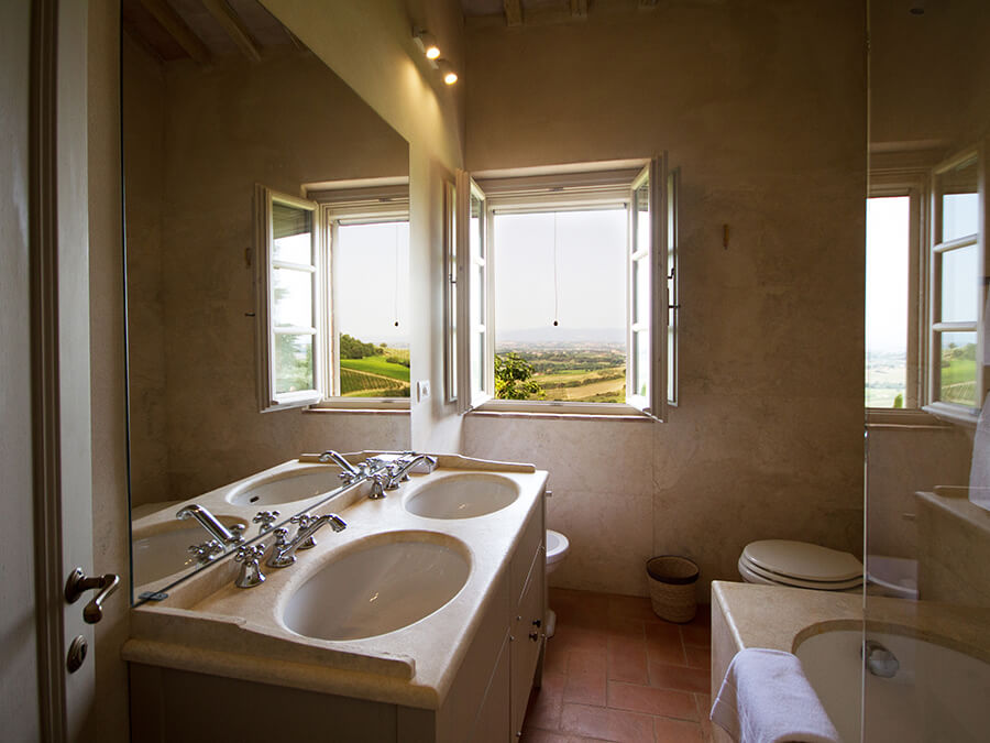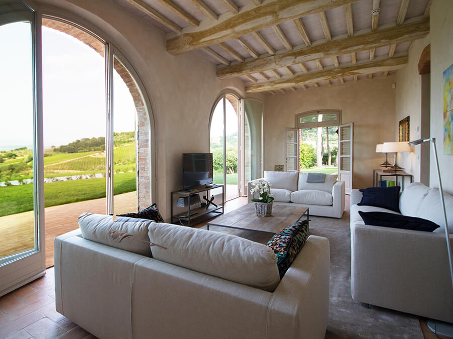 Villa Icario is a rare find among Montepulciano Villas to Rent, located within a private wine estate just a short walk from the historic town. Here, rolling vineyards meet the timeless beauty of Valdichiana. Every terrace frames sweeping countryside views. Meanwhile, the infinity pool blends seamlessly into the landscape below.
